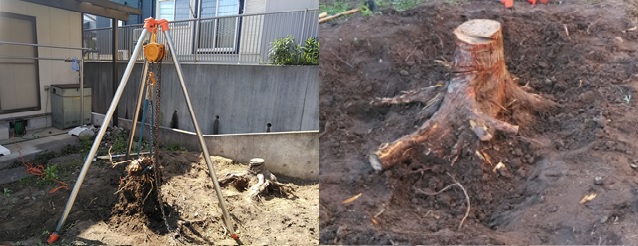 伐採した木の切り株を残さずに、根を掘り返して抜いてしまいます。